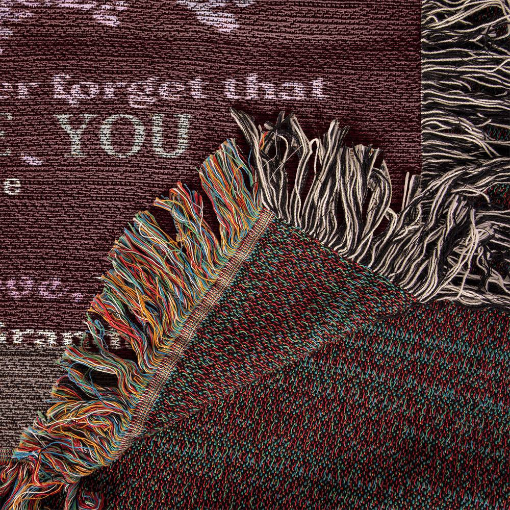 Create a unique keepsake with our Heirloom Woven Blanket. This piece is lovingly woven on a loom with cozy, 100% cotton yarn and features your unique design. This would make an ideal gift for your beloved partner, family members, or dear friends on special occasions like birthdays, anniversaries, or any event where you want to express your love and appreciation unforgettably.