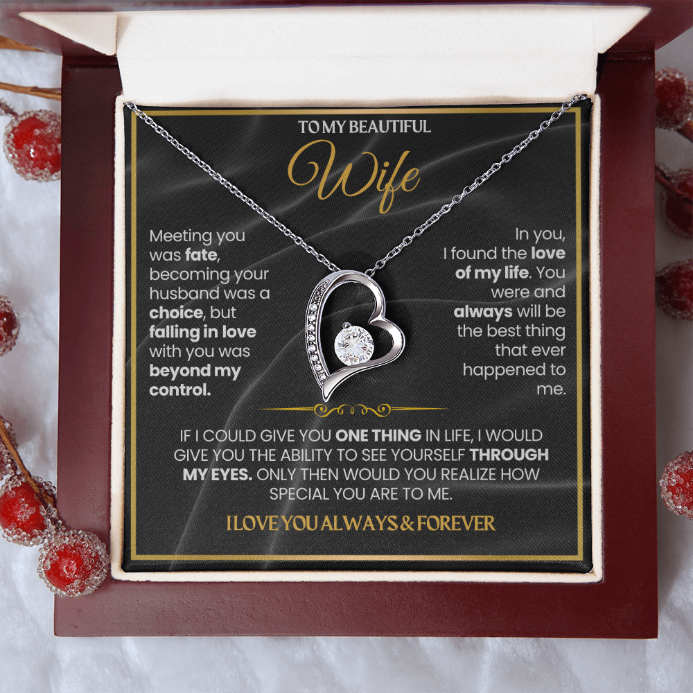 - Meeting you was fate, becoming your husband was a choice, but falling in love with you was beyond my control. In you, I found the love of my life. You were and always will be the best thing that ever happened to me. If I could give you one thing in life, I would give you the ability to see yourself through my eyes. Only then would you realize how special you are to me. I LOVE YOU ALWAYS & FOREVER"