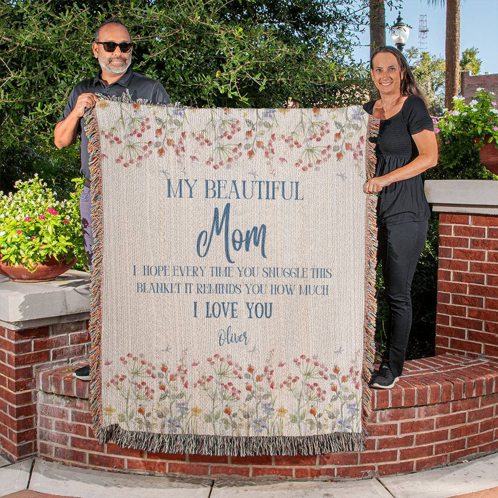 Are you looking for the ideal gift to express your love for Mom? Our 'I Love You Mom' heirloom blanket is the perfect choice! Crafted with care and customizable with heartfelt messages, this blanket is a cozy symbol of your affection. Shop now at our store and make Mom's day unforgettable!