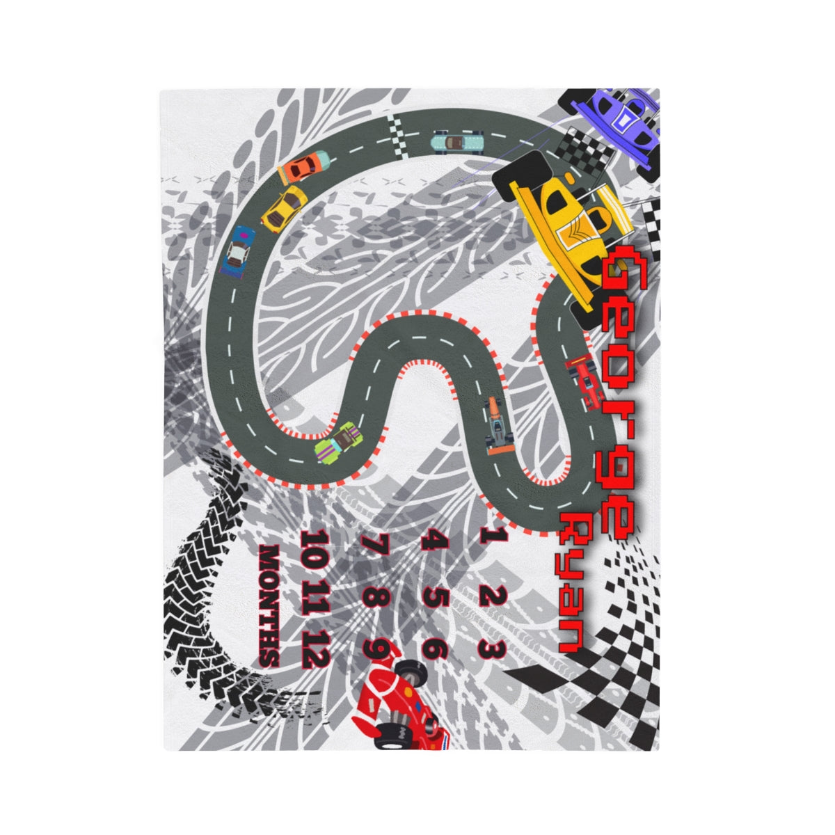 Capture your baby's first year in style with our Racing Car Baby Milestone Blanket! This soft and cozy blanket is the perfect photo prop to document your little one's monthly growth and development.