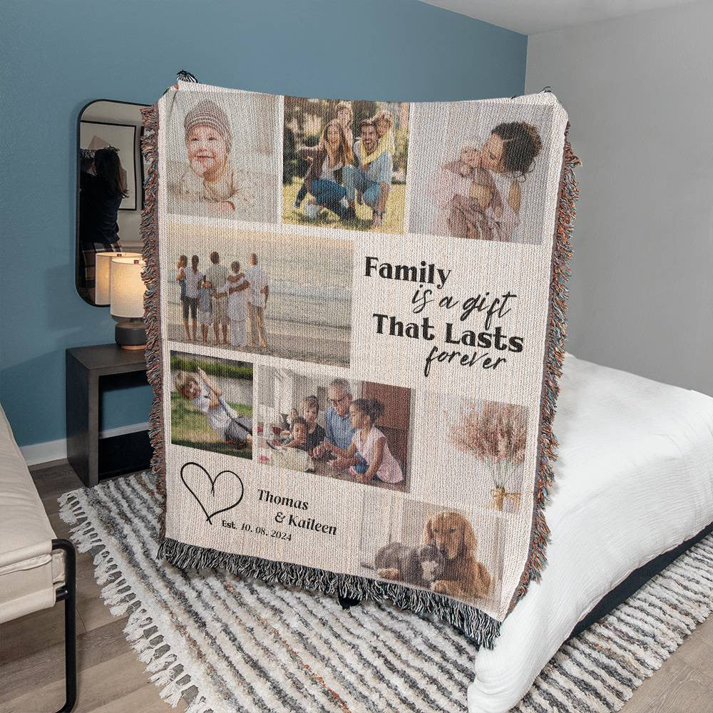 This blanket isn't just a piece of décor; it's a tangible reminder of cherished memories. Whether it's a snapshot of a milestone moment or a beloved pet, seeing it woven into the fabric makes every use feel like a warm hug from loved ones. It's a meaningful addition to any home and a perfect gift for loved ones.